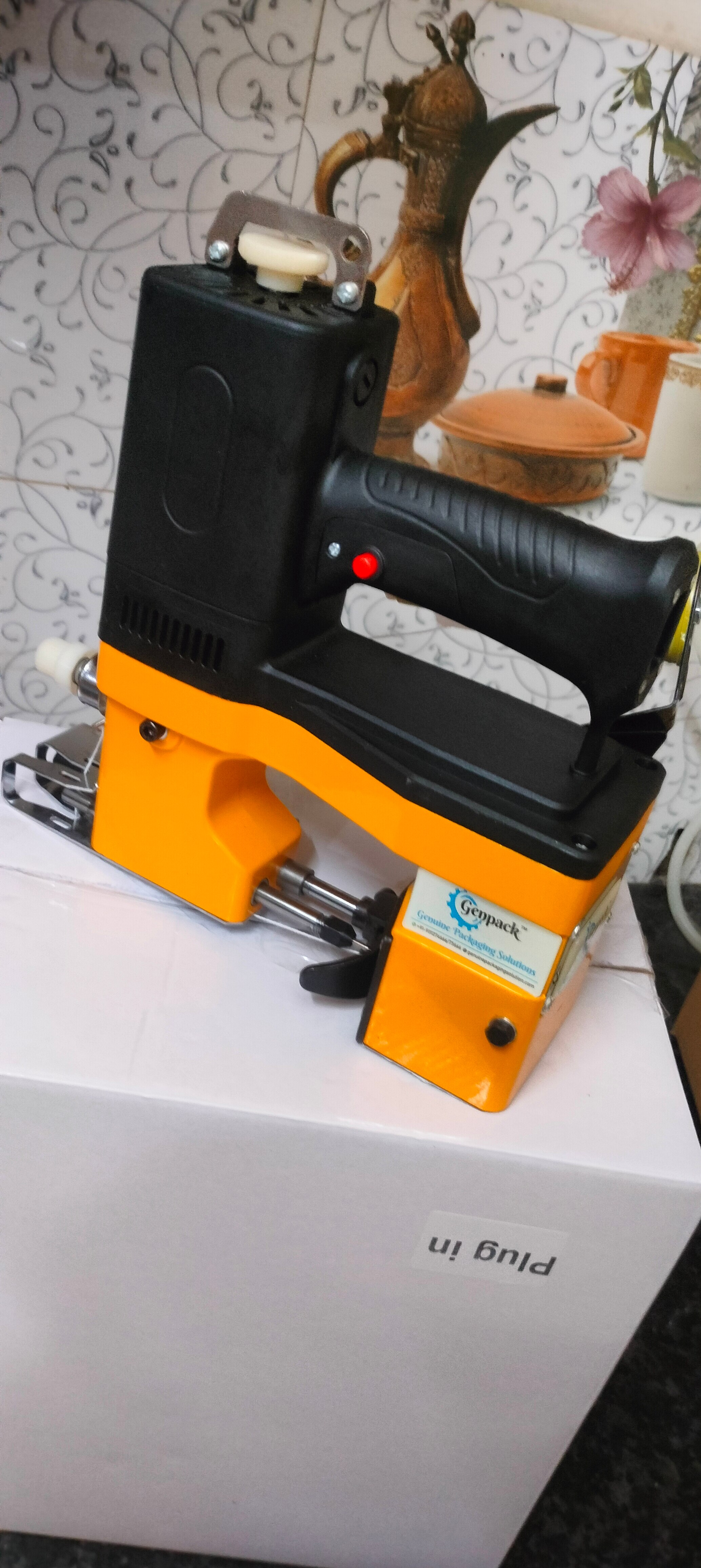 bag closer machine is a portable sewing machine designed for sealing filled bags with a strong chain stitch. It is easy to use—simply place it on the open mouth of the bag, move it along the edge, and it securely stitches the bag. This machine is durable and efficient, suitable for stitching paper, textiles, and HDPE/PP bags in industries like agriculture, food, and chemicals. Get A Quote Specifications Brand genuine packaging anufacturer Machine Power300 WPower Requirements220-250VSewing Speed6-9 Bags/minType of StitchFederal stitch type single Thread Chain stitchStitch Length3.5 Stitch/inch(25.4mm)Needle SizeDBX1 200/25 Groz-BeckertDimension in mm(L*W*H)440*290*360Weight6.3 KG  Key Features Packing machines provide fast, accurate, and customizable packaging solutions. With automation, durability, and user-friendly controls, they enhance productivity, reduce waste, and ensure consistent quality across various industries. Single-Thread DADR stitches the bag covering the length of 7.2mm The sewing speed of the machine is approximately 400 bags per hour Light in weight for easy movement and transport. Performs sewing jobs on all types of poly bags made from HDPE, PP, BOPP, jute bags, etc.  Get this Product Full Name* Mobile Number* Email Your Location* Quick Links Events Blog Our Presence Virtual Tour Faq Brand Industry Support Our Products Sealing machine Vacuum packing machine Strapping machine Shrink machine Filling machine Hand pallet truck Pvc strip curtains Batch coding machine